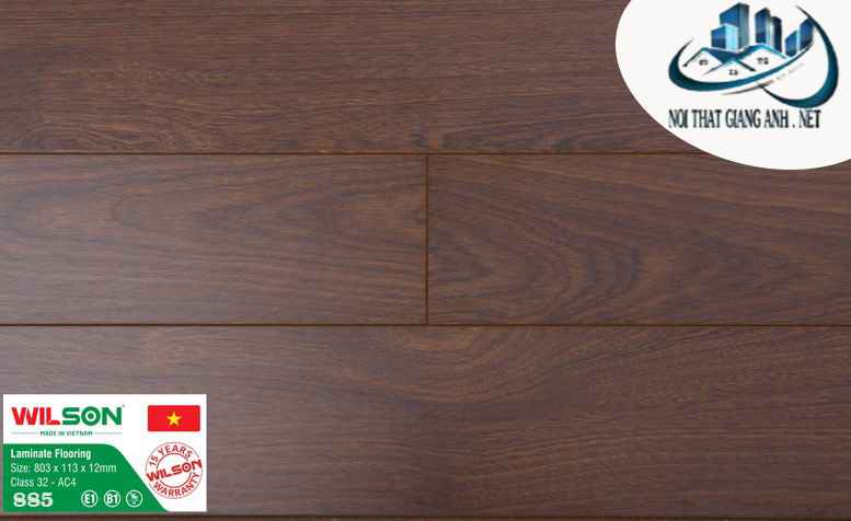 Sàn gỗ Wilson sử dụng công nghệ hèm khóa có phủ sáp nến ở bề mặt cạnh giúp tăng khả năng chống thấm tốt hơn. Đây là dòng sàn gỗ Việt Nam giá rẻ với chất lượng ổn định, màu sắc đẹp và đa dạng về kích thước.