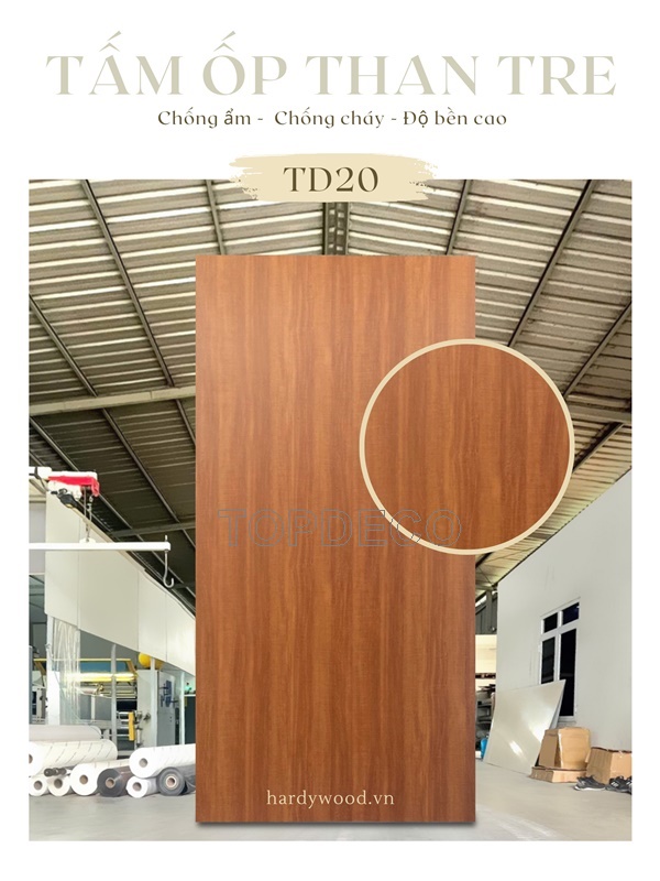 Tấm ốp đa năng/ Tấm ốp than tre TOPDECO là tấm nhựa đặc được dán 1 lớp màng film ở trên bề mặt để tạo vân. Tấm nhựa đặc này có lõi màu đen, bề mặt cứng mịn giúp hạn chế bị lõm khi va đập.