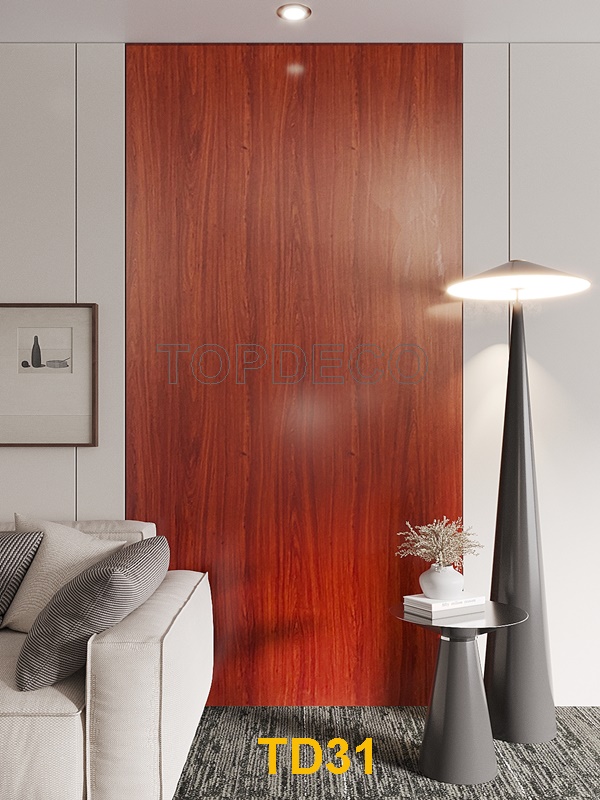 Tấm ốp đa năng/ Tấm ốp than tre TOPDECO là tấm nhựa đặc được dán 1 lớp màng film ở trên bề mặt để tạo vân. Tấm nhựa đặc này có lõi màu đen, bề mặt cứng mịn giúp hạn chế bị lõm khi va đập.