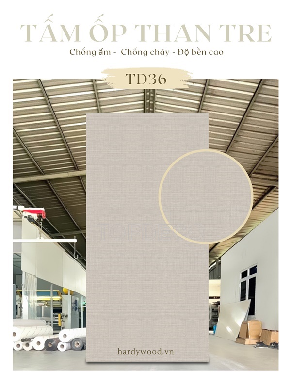Tấm ốp đa năng/ Tấm ốp than tre TOPDECO là tấm nhựa đặc được dán 1 lớp màng film ở trên bề mặt để tạo vân. Tấm nhựa đặc này có lõi màu đen, bề mặt cứng mịn giúp hạn chế bị lõm khi va đập.