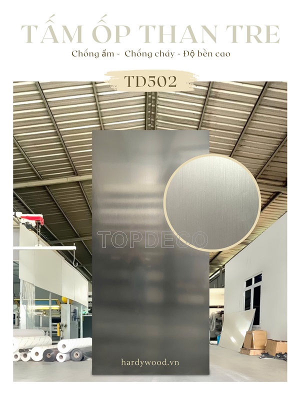 Tấm ốp đa năng/ Tấm ốp than tre TOPDECO là tấm nhựa đặc được dán 1 lớp màng film ở trên bề mặt để tạo vân. Tấm nhựa đặc này có lõi màu đen, bề mặt cứng mịn giúp hạn chế bị lõm khi va đập.